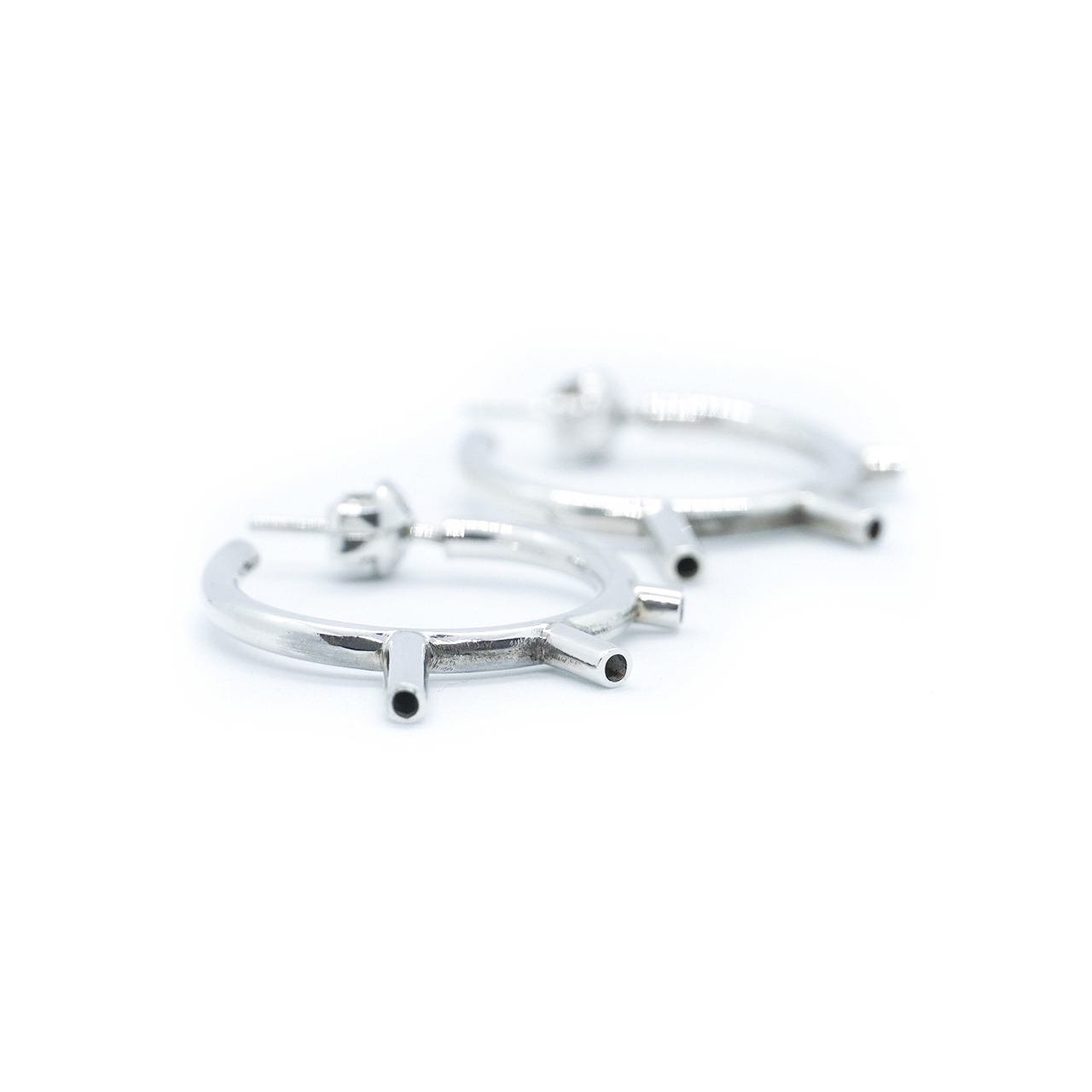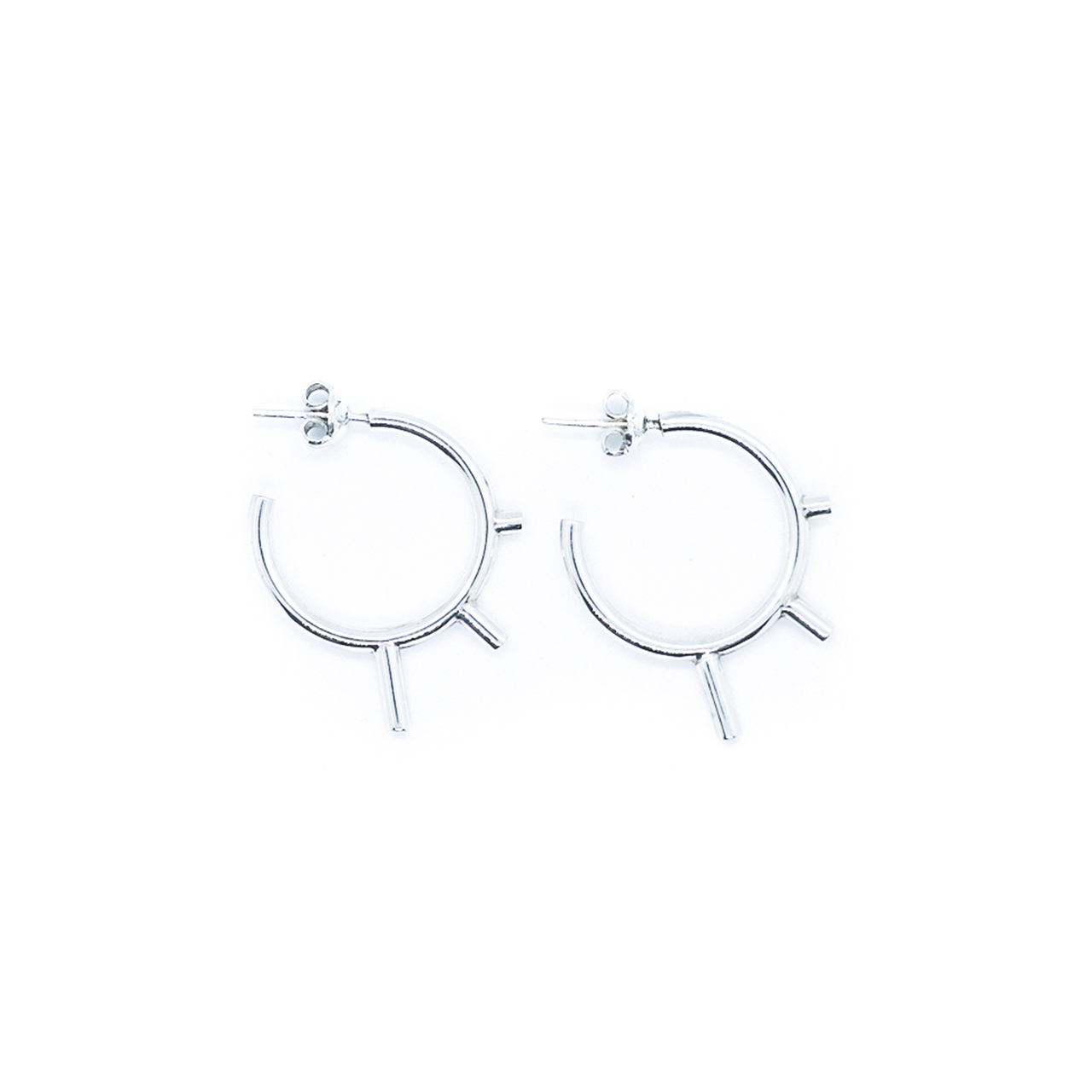 Par de argollas de plata con 3 picos, 2,5cm de diámetro.