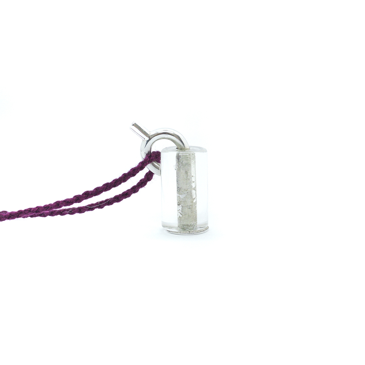 Dije con cuerpo de piedra Cuarzo Cristal y ‘asa estribo’ de plata 925. No incluye cadena ni pita.