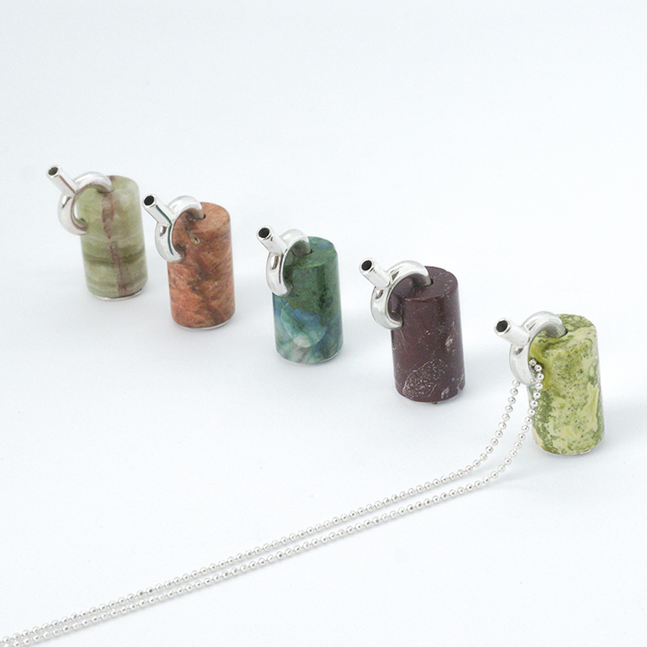 Dije con Cuerpo de piedra Serpentina y ‘asa estribo’ de plata 925. No incluye cadena ni pita.