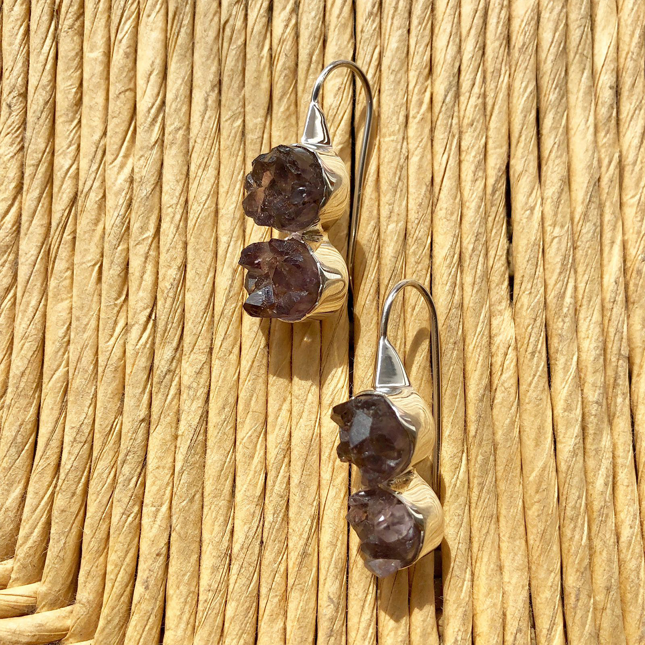 Par de aretes con 2 piedra Amatista por lado, colgantes.